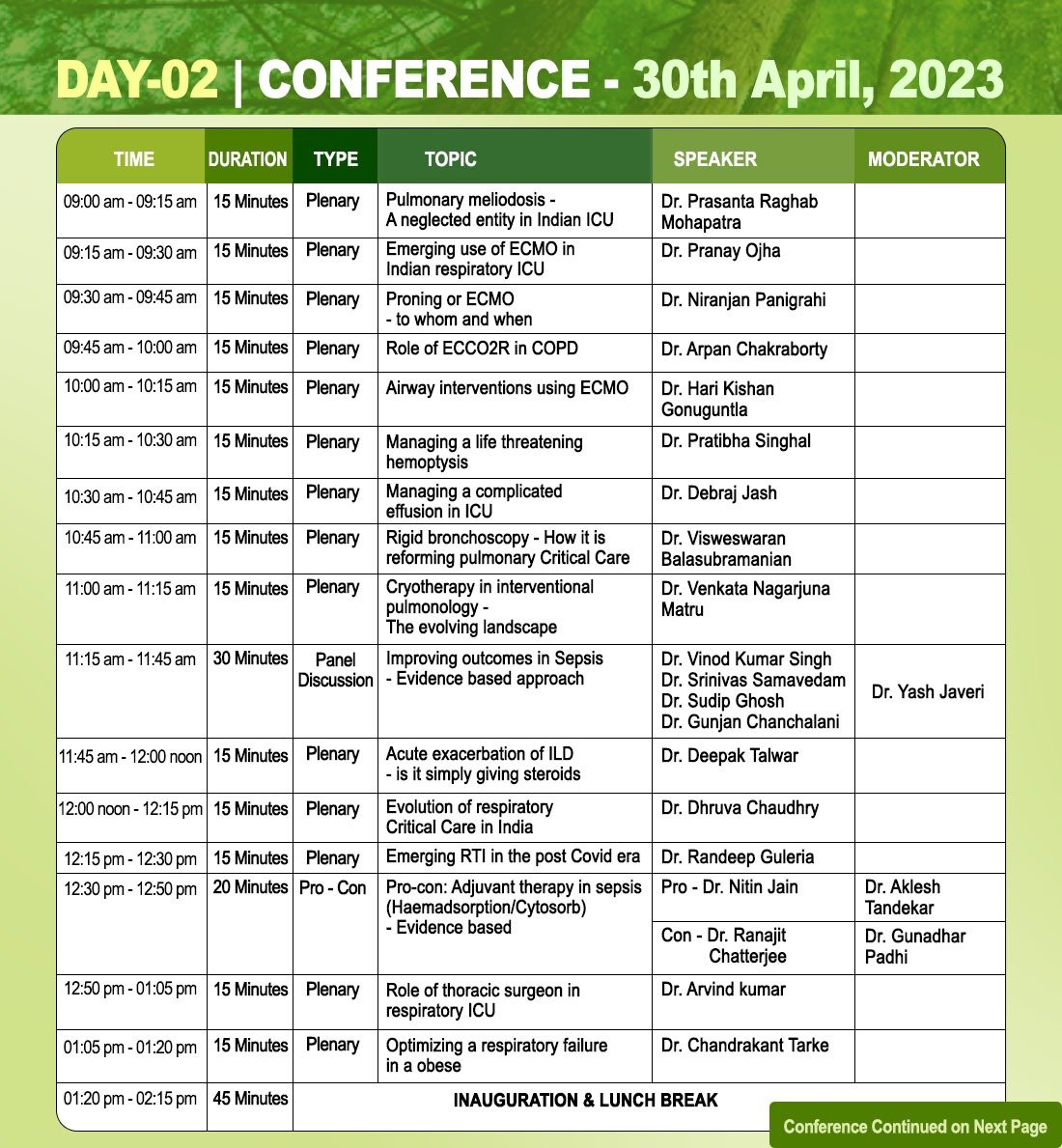 We are organising Respiratory Critical Care Congress on April 29 & 30, 2023 at Raajkutir, Kolkata. The aim of the conference is to evaluate and expose the different ideologies as well as expertise in the field of Respiratory Critical Care. The vision of this conference is to improve Respiratory and Critical Care as well as ECMO services in the country.